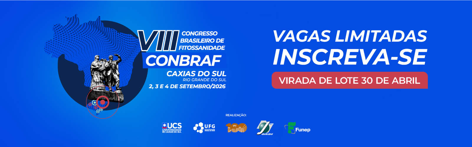 O VIII Congresso Brasileiro de Fitossanidade – Conbraf será realizado no Teatro da UCS Universidade de Caxias do Sul-RS, nos dias 2, 3 e 4 de setembro de 2026, com o tema Fitossanidade e Agricultura de Baixo Carbono.